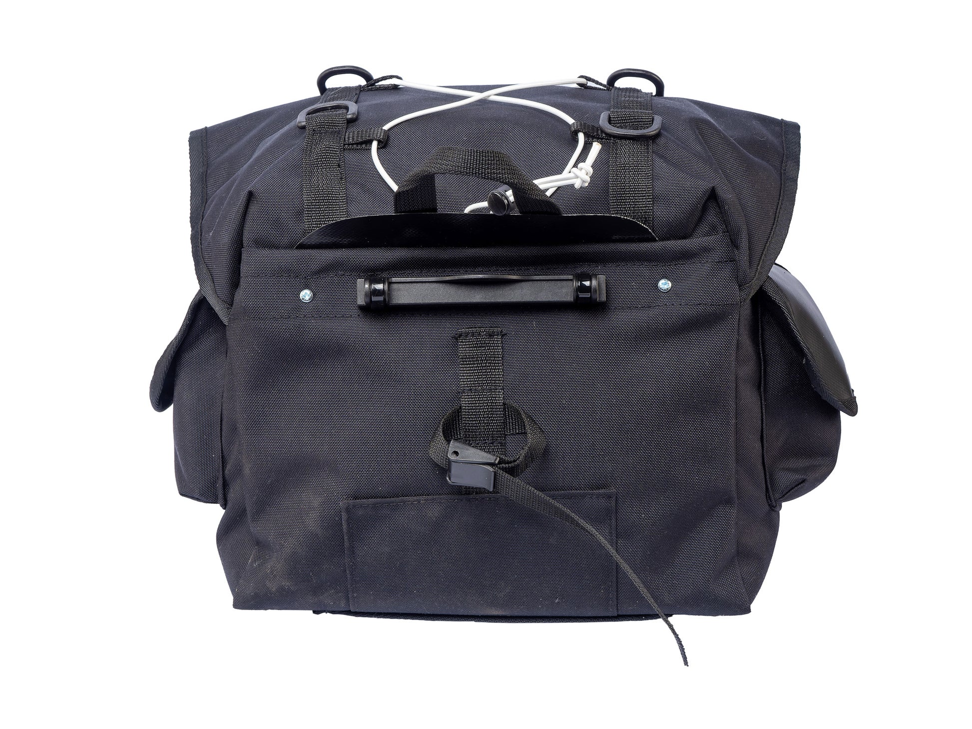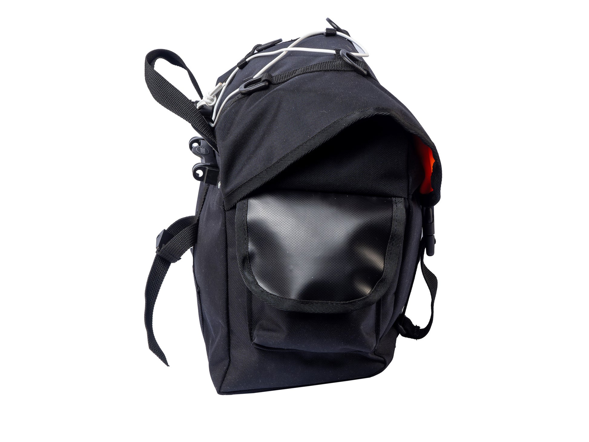 The bag features an integral pocket on the outside. A convenient carrying handle and alongside the bungee cord for essentials on the move and an internal rigid rack support for the Bagman Expedition Quick Release Support Rack.